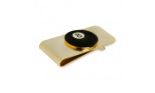 Держатель для денег «Шар №8» — полезная принадлежность и альтернатива традиционному кошельку. Держатель представляет собой металлический зажим бежевого цвета со стилизованным изображением бильярдного шара №8 в качестве украшения.